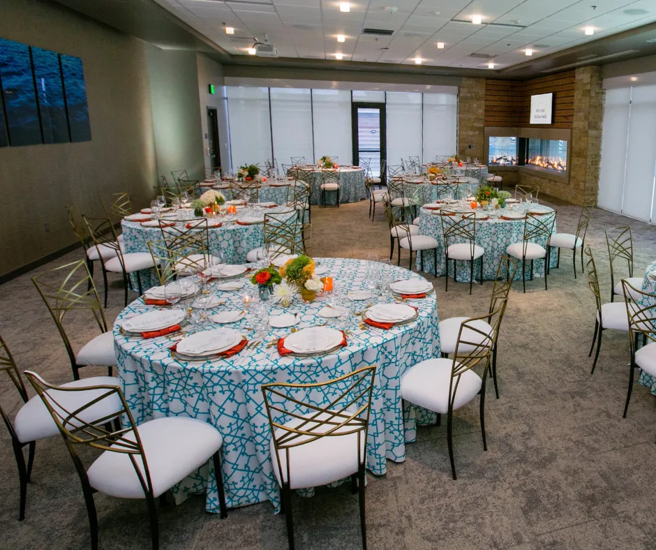 - Custom table and chair setup (upstairs event spaces only)